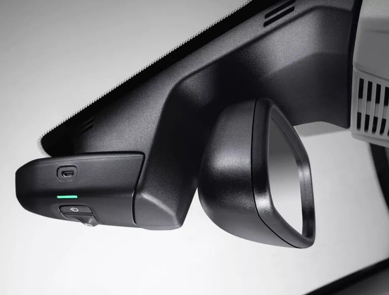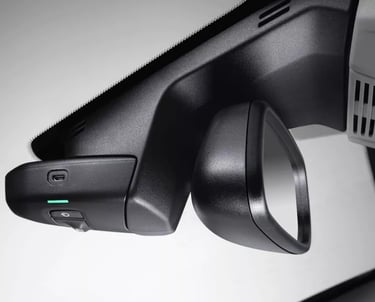 Cámara digital de alta definición que está integrada en el retrovisor interior. Captura imágenes y vídeos de todo lo que pasa delante del coche. En caso de choque o colisión, registra una secuencia de un minuto treinta segundos.