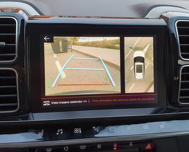 El sistema Top Rear Vision es una tecnología de asistencia al aparcamiento que utiliza una cámara de visión trasera de 180° para reconstruir una vista cenital (desde arriba) del entorno del vehículo