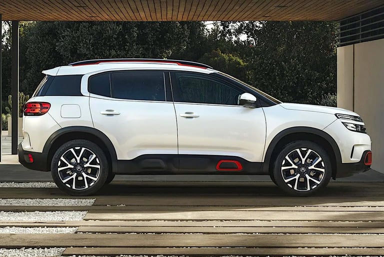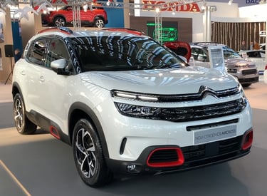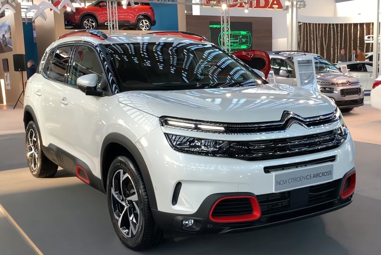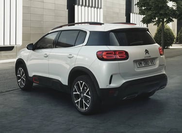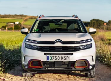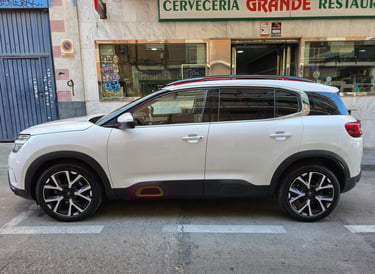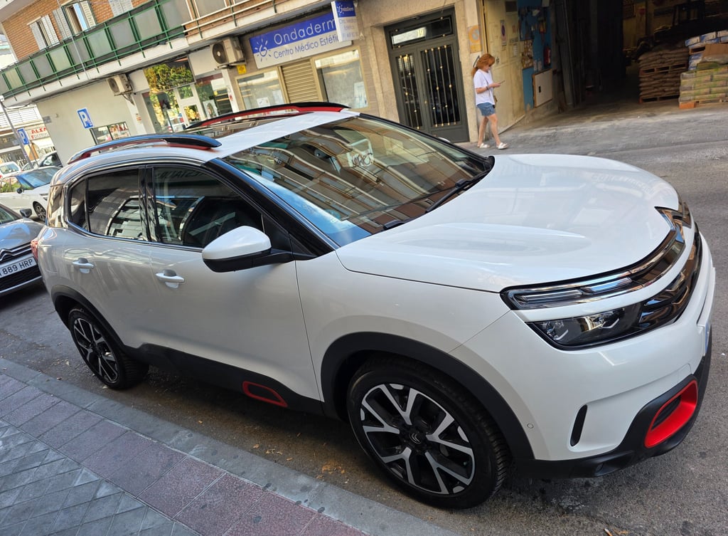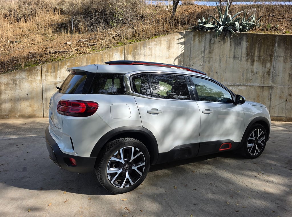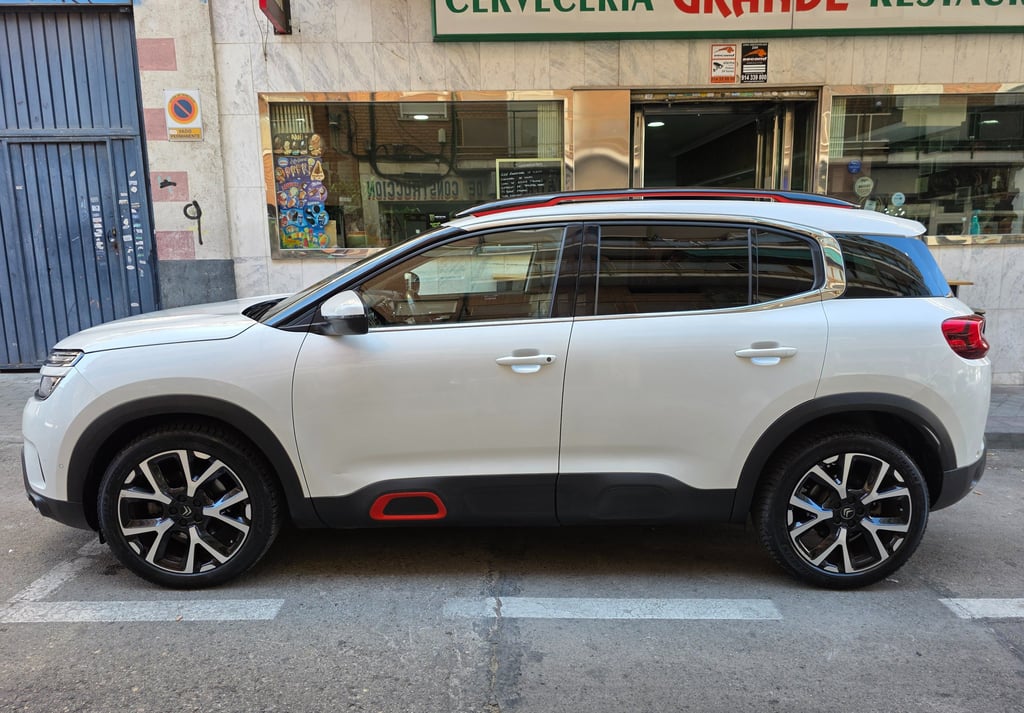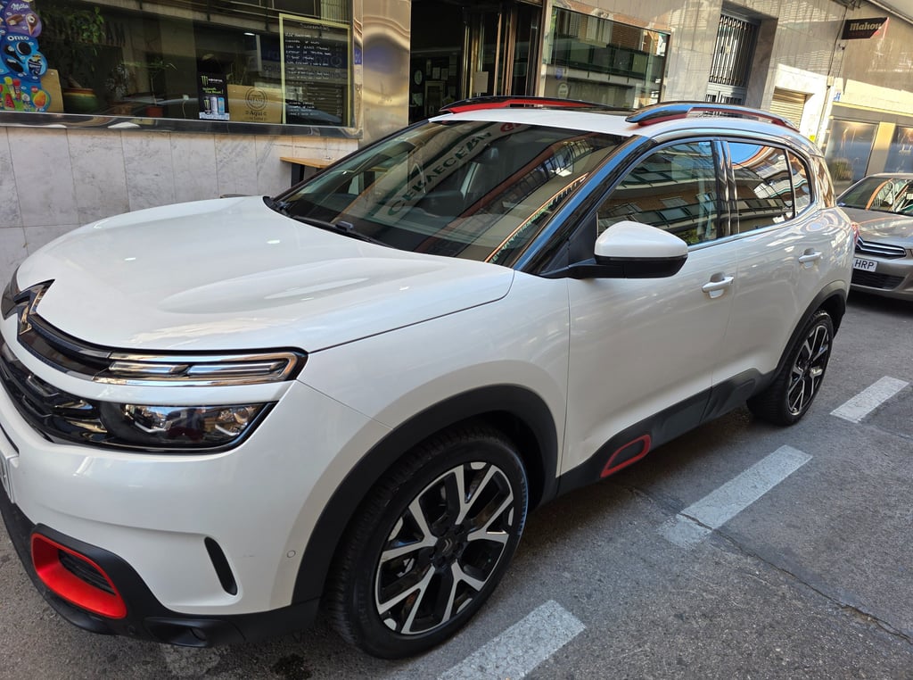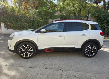 El exterior del Citroën C5 Aircross Shine 2019 destaca por un diseño robusto y moderno, marcado por su frontal con firma luminosa LED en dos niveles, la parrilla cromada integrada y las formas redondeadas típicas de la marca. Su silueta SUV enfatiza el confort y la presencia en carretera gracias a los Airbumps laterales, las llantas de aleación de 18 pulgadas y los detalles en color que personalizan el estilo. La parte trasera incorpora pilotos LED 3D y un diseño limpio y amplio que refuerza su carácter aventurero. En conjunto, el C5 Aircross Shine ofrece una estética distintiva y equilibrada, combinando personalidad, elegancia y un toque de robustez que lo hace fácilmente reconocible.