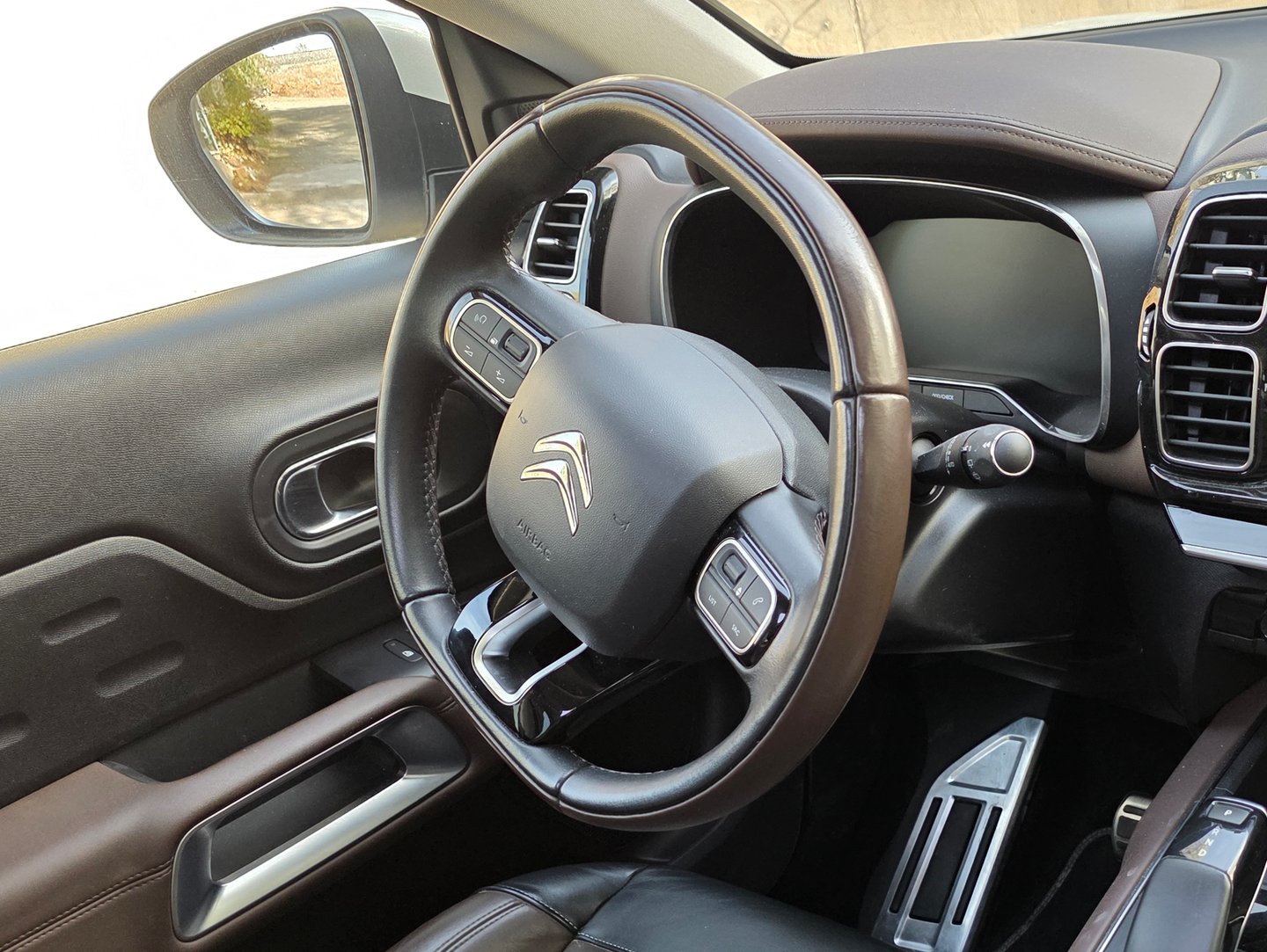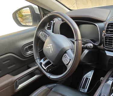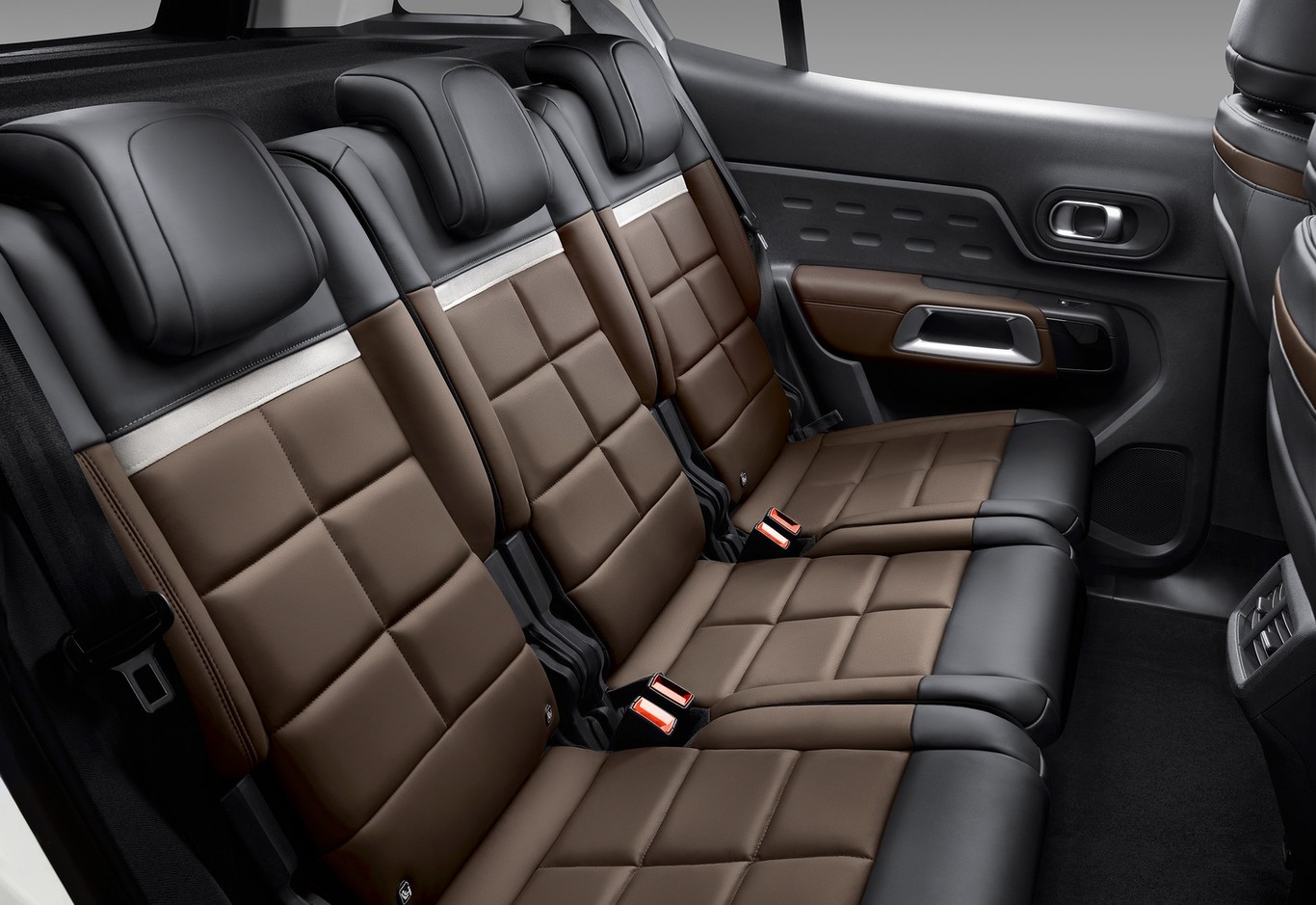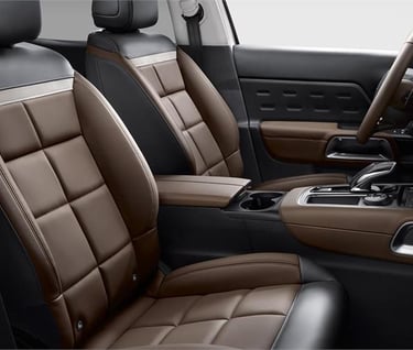 Asientos Advanced Comfort: Incluye los icónicos asientos con espuma de alta densidad (15 mm de capa extra) tapizados en una combinación de Cuero Nappa Marrón y tejido negro, con un patrón de costuras en forma de "chevrones" Citroën España.