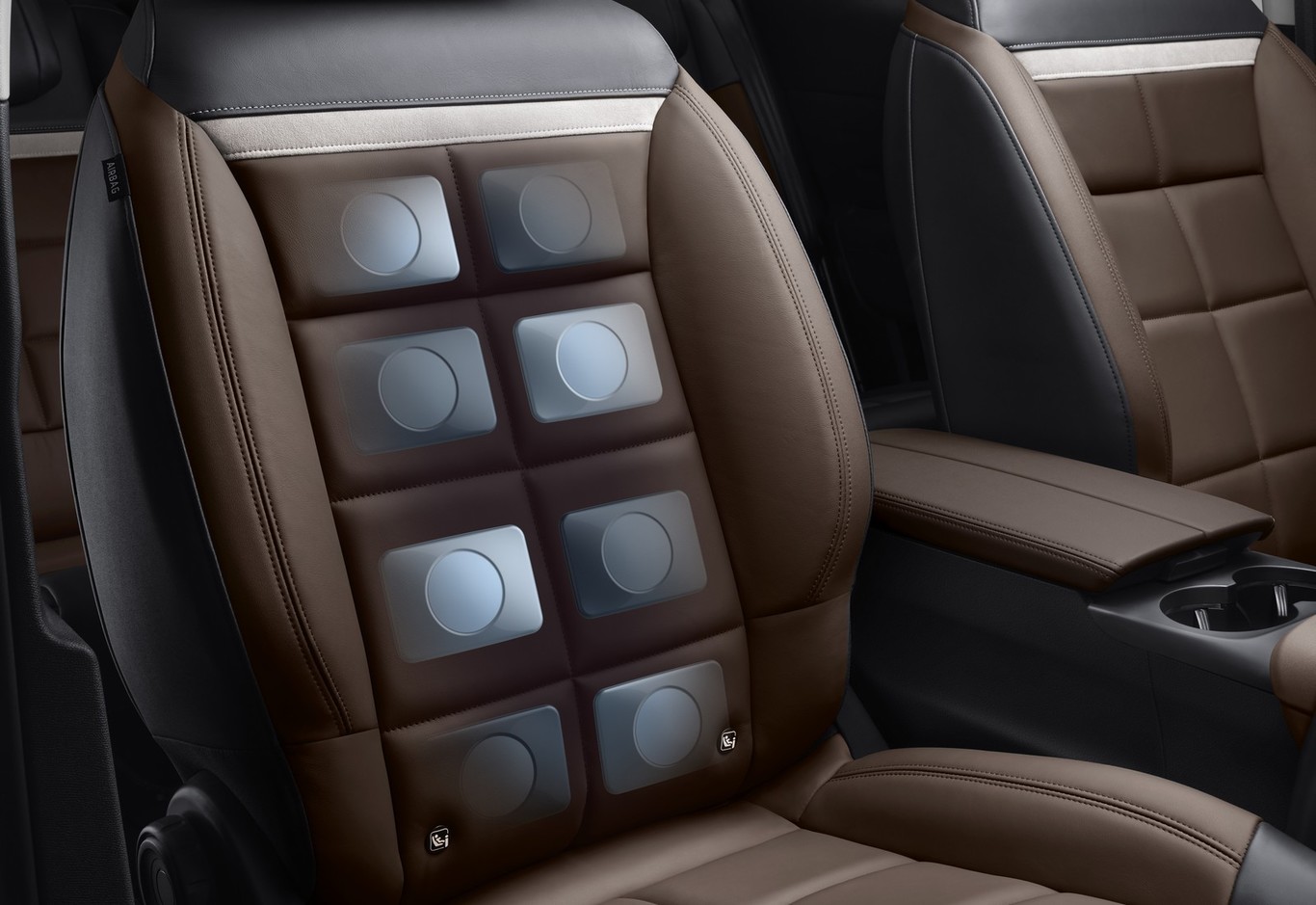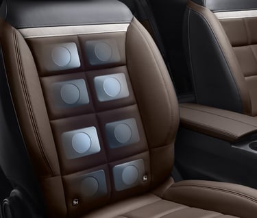 Ofrece un masaje lumbar multipunto neumático. Dispone de 5 programas diferentes (como "relajante", "estimulante" o "ondulante") que se pueden seleccionar a través de la pantalla táctil central del vehículo. Está diseñado para reducir la fatiga en viajes largos y mejorar el confort general del asiento.