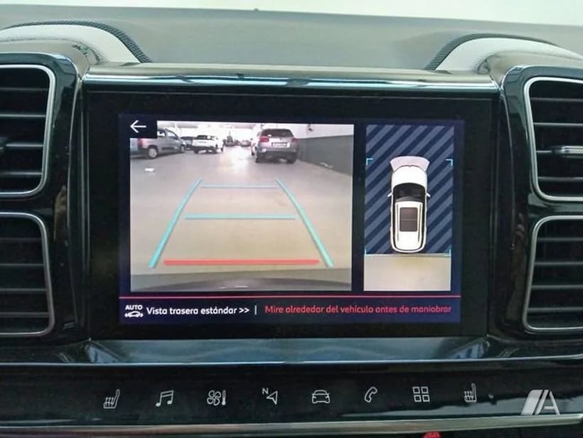 Vista de 180°: Al engranar la marcha atrás, la pantalla táctil muestra una visión amplia de lo que hay detrás del coche.