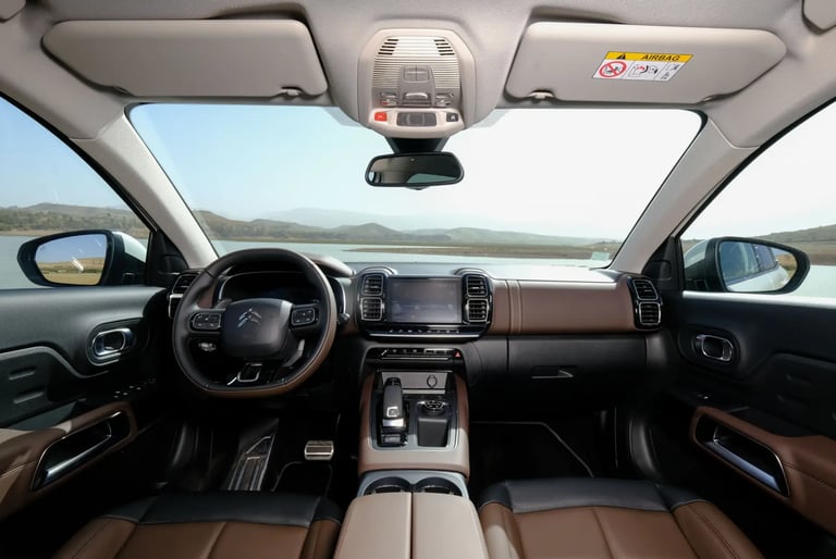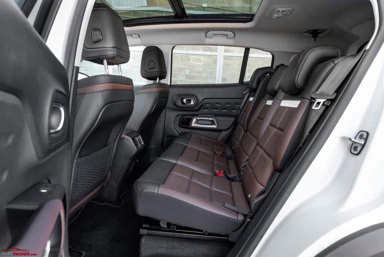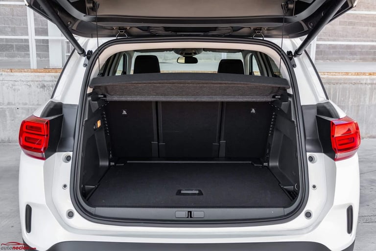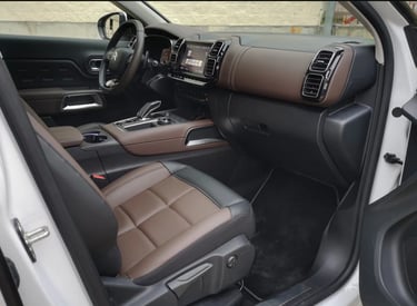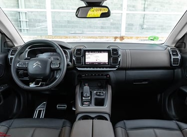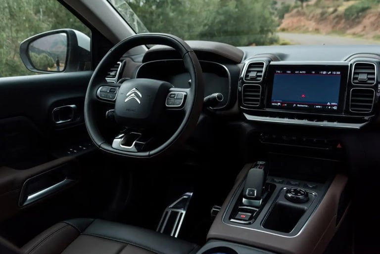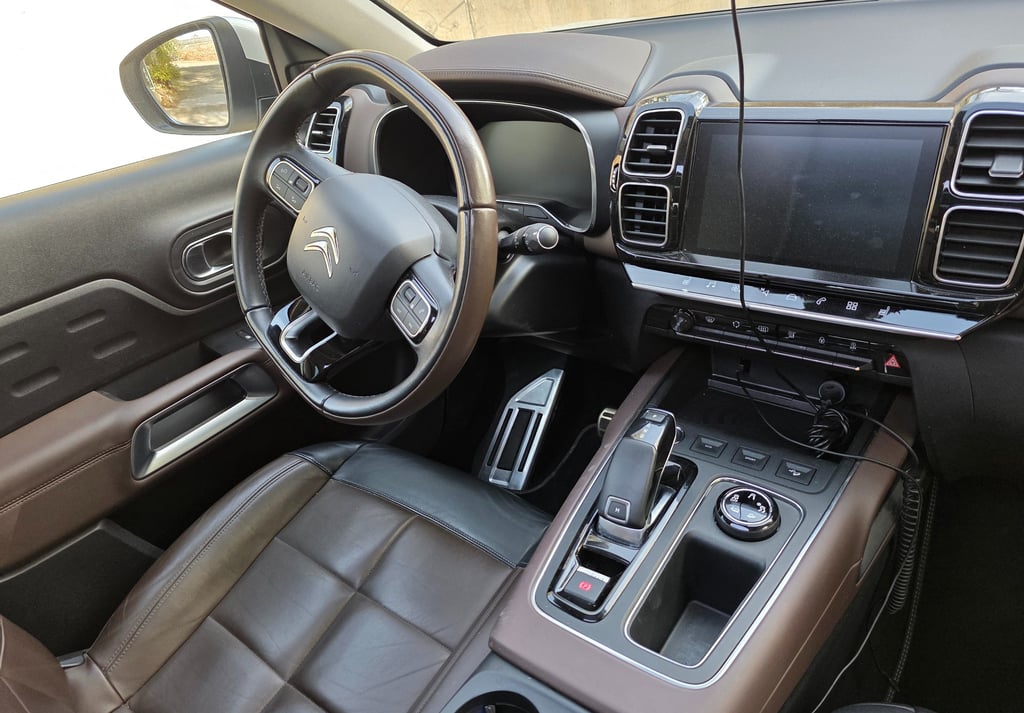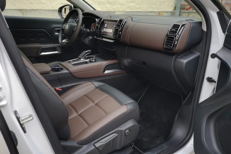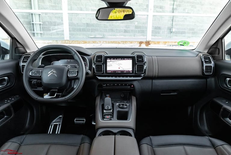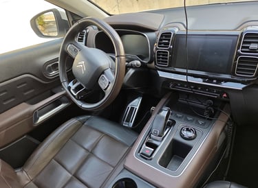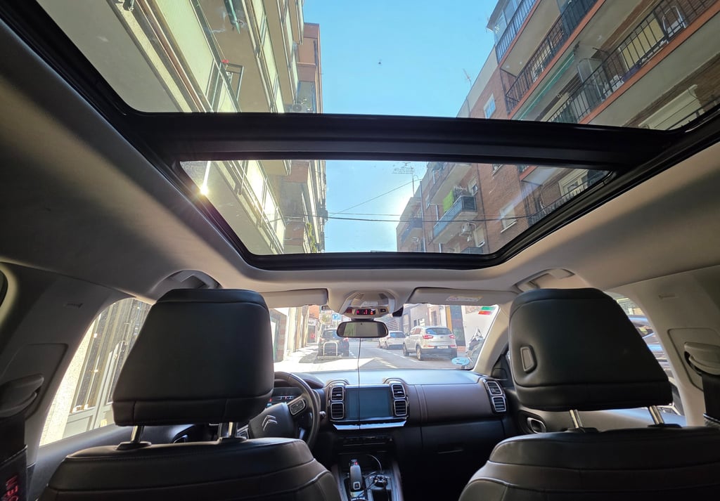 El interior del Citroën C5 Aircross Shine 2019 destaca por su enfoque en el confort y la tecnología, ofreciendo un habitáculo amplio con materiales de buena calidad y los característicos asientos Advanced Comfort, muy mullidos y pensados para viajes largos. Incluye un cuadro digital de 12,3", pantalla táctil de 8" con navegación, CarPlay y Android Auto, climatizador bizona, acceso y arranque sin llave, y múltiples asistentes como control de crucero adaptativo, cámara y sensores de aparcamiento. Los tres asientos traseros individuales, deslizantes y reclinables, junto al gran maletero, aportan una versatilidad poco común en su segmento, convirtiéndolo en un SUV especialmente cómodo y práctico para el uso diario.