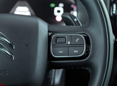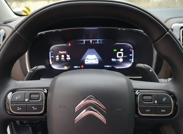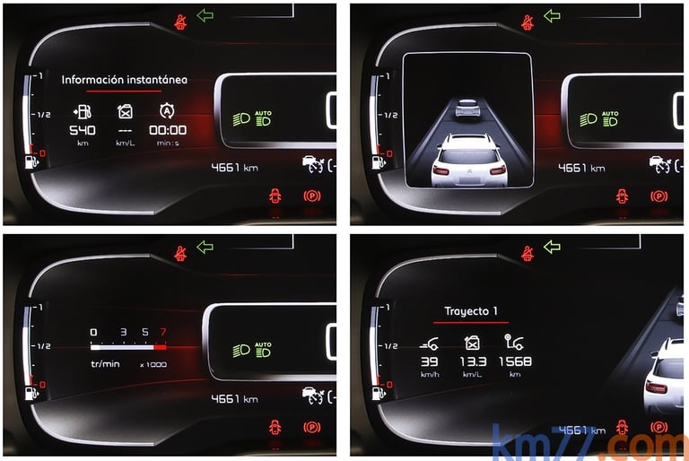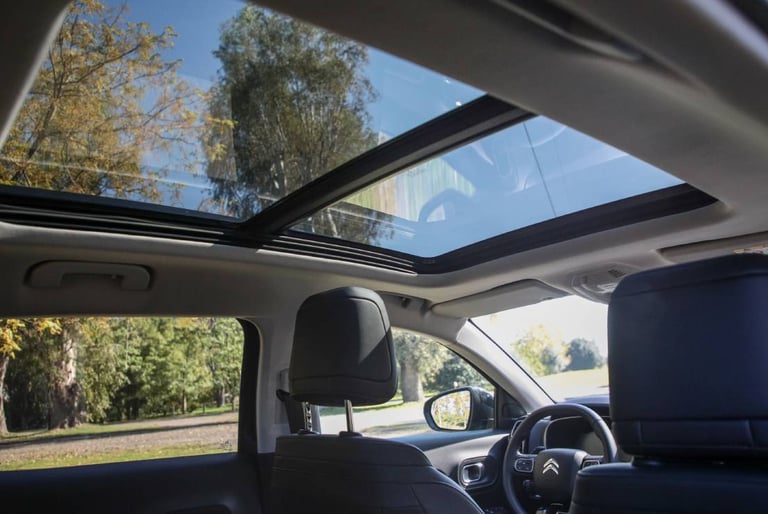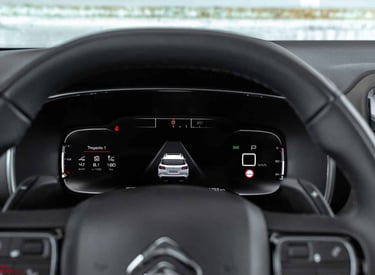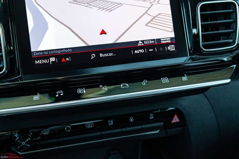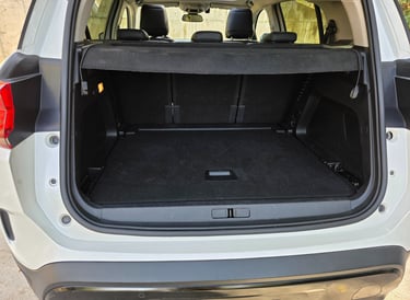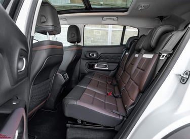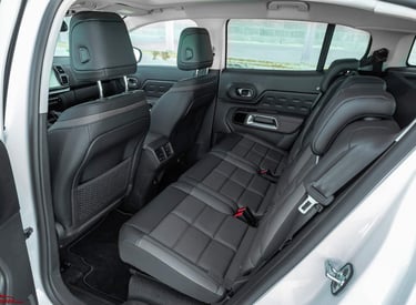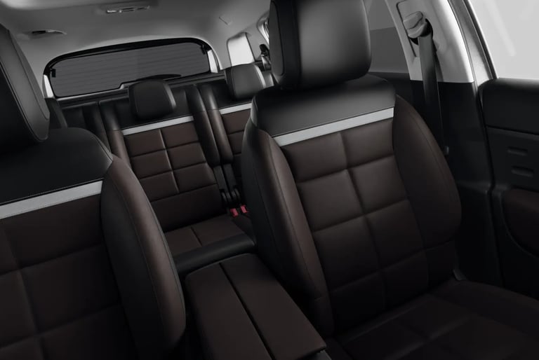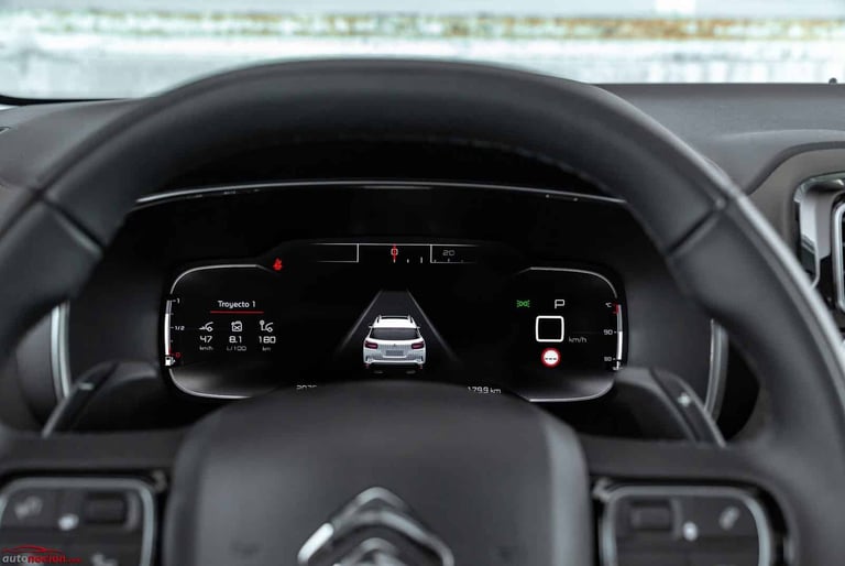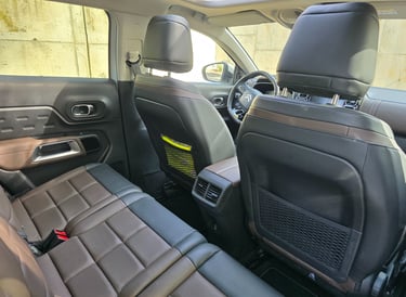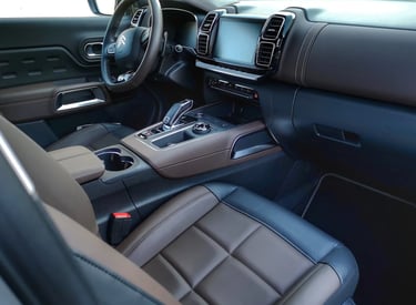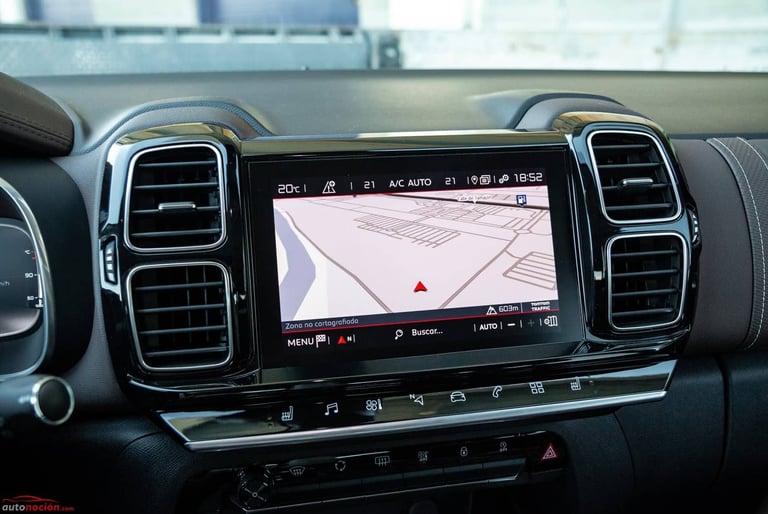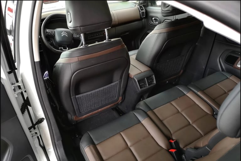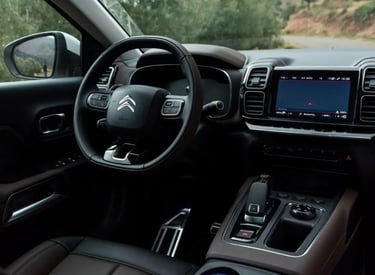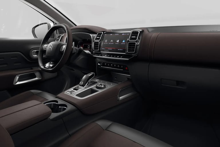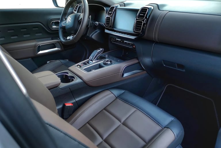 El interior del Citroën C5 Aircross Shine 2019 destaca por su enfoque en el confort y la tecnología, ofreciendo un habitáculo amplio con materiales de buena calidad y los característicos asientos Advanced Comfort, muy mullidos y pensados para viajes largos. Incluye un cuadro digital de 12,3", pantalla táctil de 8" con navegación, CarPlay y Android Auto, climatizador bizona, acceso y arranque sin llave, y múltiples asistentes como control de crucero adaptativo, cámara y sensores de aparcamiento. Los tres asientos traseros individuales, deslizantes y reclinables, junto al gran maletero, aportan una versatilidad poco común en su segmento, convirtiéndolo en un SUV especialmente cómodo y práctico para el uso diario.